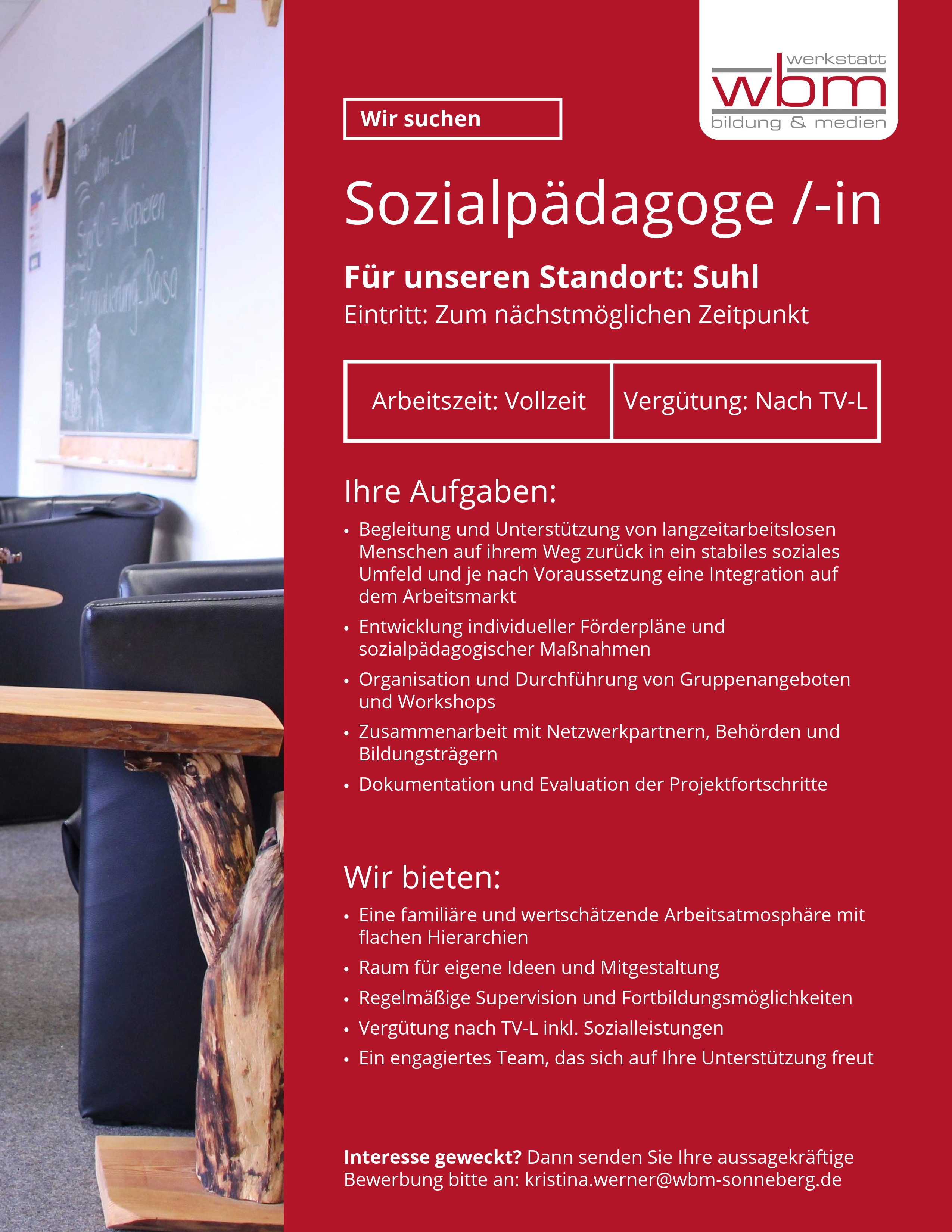 Dann rufen sie uns unter 03675 / 46 99 77 0 an, senden uns eine E-Mail an info@wbm-sonneberg.de oder laden ihre Bewerbung direkt hoch
